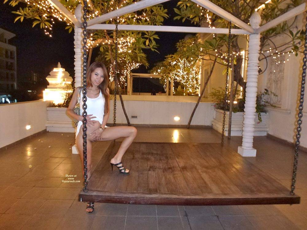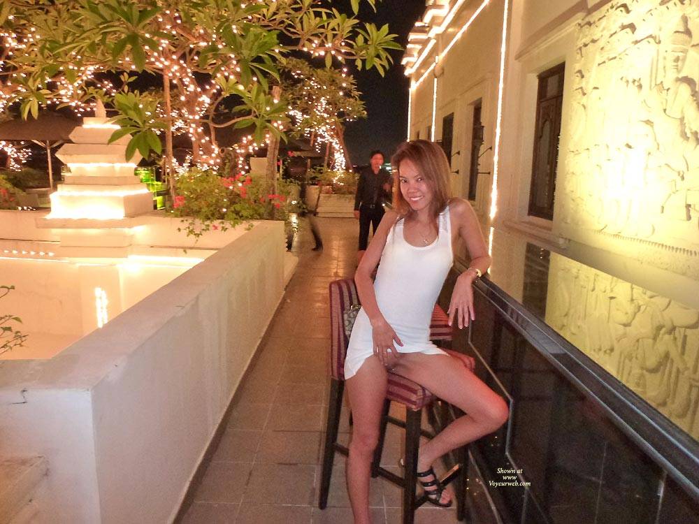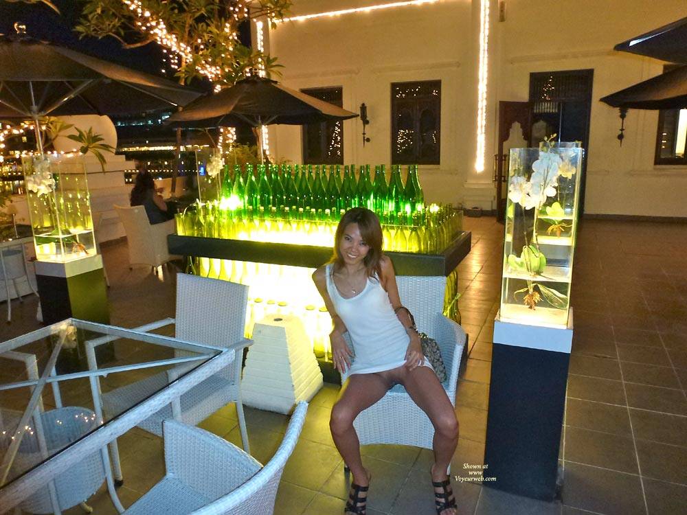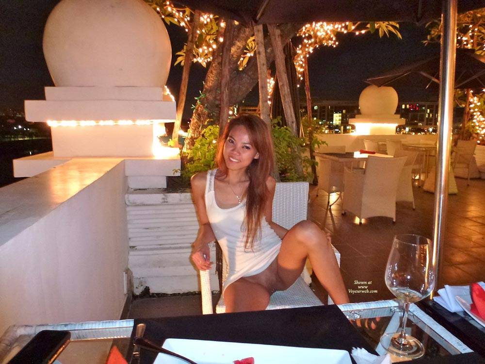 Hi all! We went to a restaurant in Vietnam and I couldn't help but do some up skirt shots all over the restaurant. One of the waiters kept following us around trying to sneak a peek. If he had been bold and just came over I would have let him finger bang me and eat my pussy! ;-P His bad luck! Haha Hope you enjoy! - Julie P