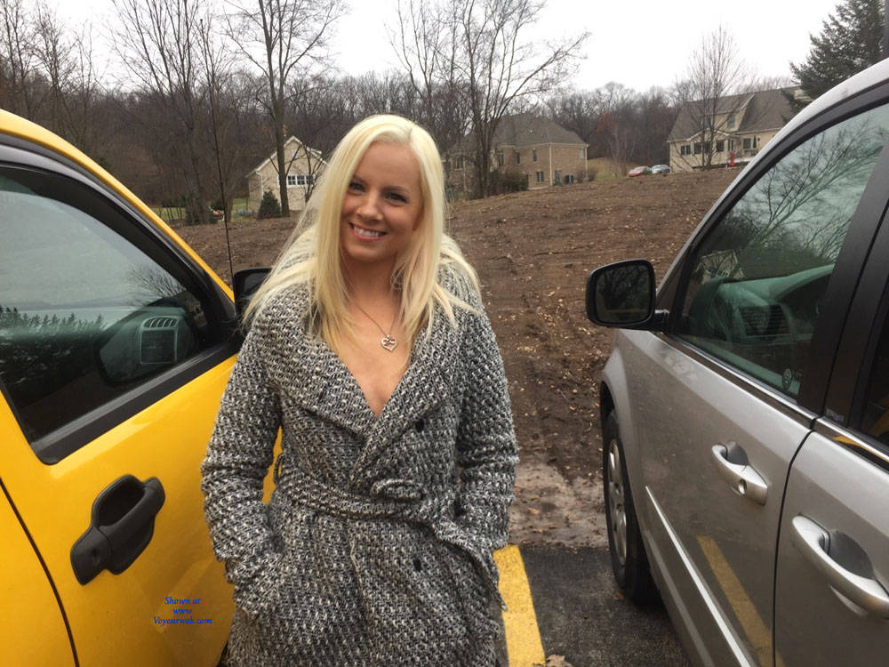 My king has been wanting me to post here for a long time. I originally posted some selfies, but I decided I'd rather give you something a little more exciting for my first time. I visit him at least a few times a week for "lunch", dressed however he tells me to. We had to snap the shots quick in his work parking lot. He could lose his job if we were caught. But that's the fun in it, right? We'll take more in the future. Just getting my feet wet...my pussy already is.