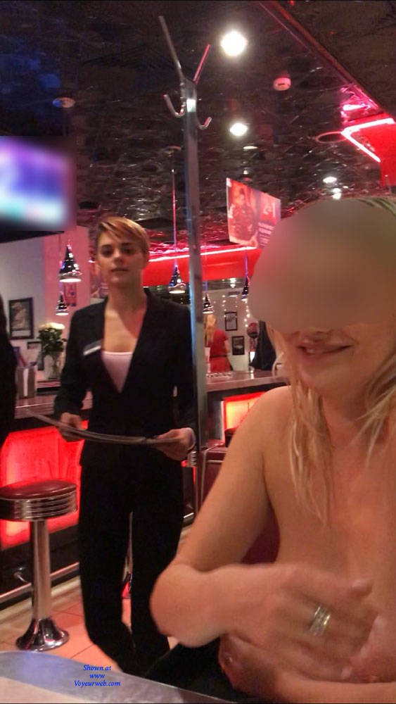We often stay late on Saturday night. Natali wants to dance king in the topless club. Then we get hungry and go to eat something in some restaurant. It may happen that we forget that Natali has her breasts uncovered...
