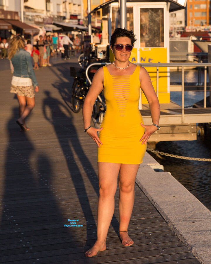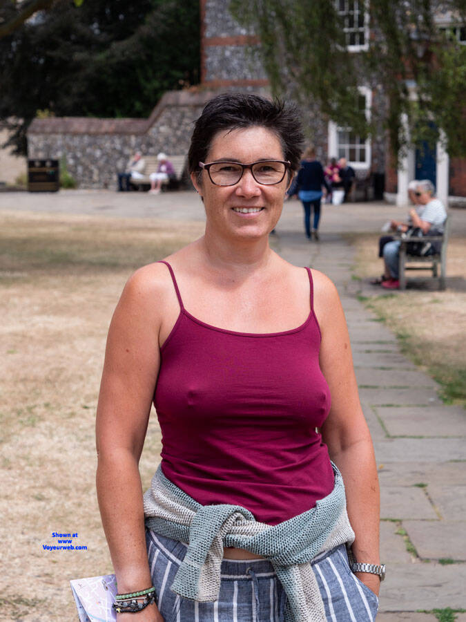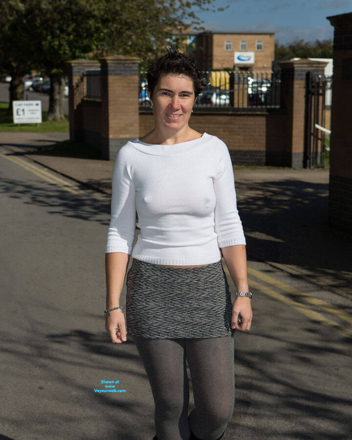 I have posted loads of galleries on here showing my naked body but I thought you might like to see what I look like when I go out. I have small firm tits and I've always hated wearing a bra so some years ago I made the decision to never wear one again. I got them together and threw them all in the bin and then a day later emptied my underwear drawer too..