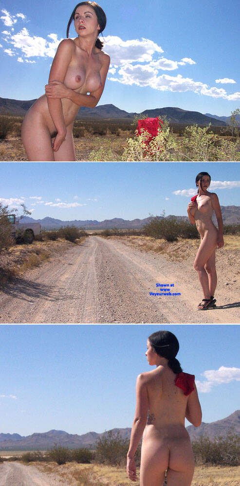 Removing her Red Lingerie in the Desert.