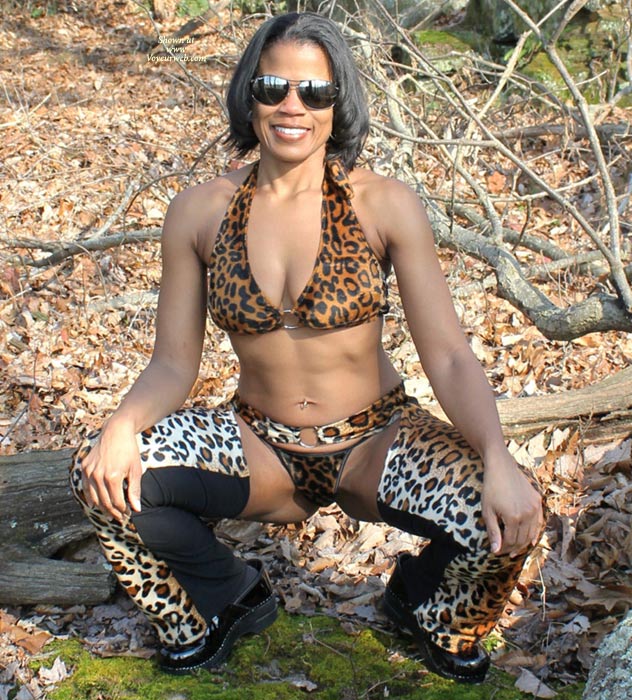 The December weather in Ohio held out for a nice weekend in the woods. We rented a cabin and decided to have a little fun. Even though it was a bit nippy outside, it was still nice enough to go for a hike. OHBoy thought that I would look good in something that fit in with our natural surroundings, so I put on my leopard print chaps and we set out on a Nature Hike. I hope you enjoy the woodland views. Join us on the RC to see how we celebrated the holiday season during the evenings in the cabin.